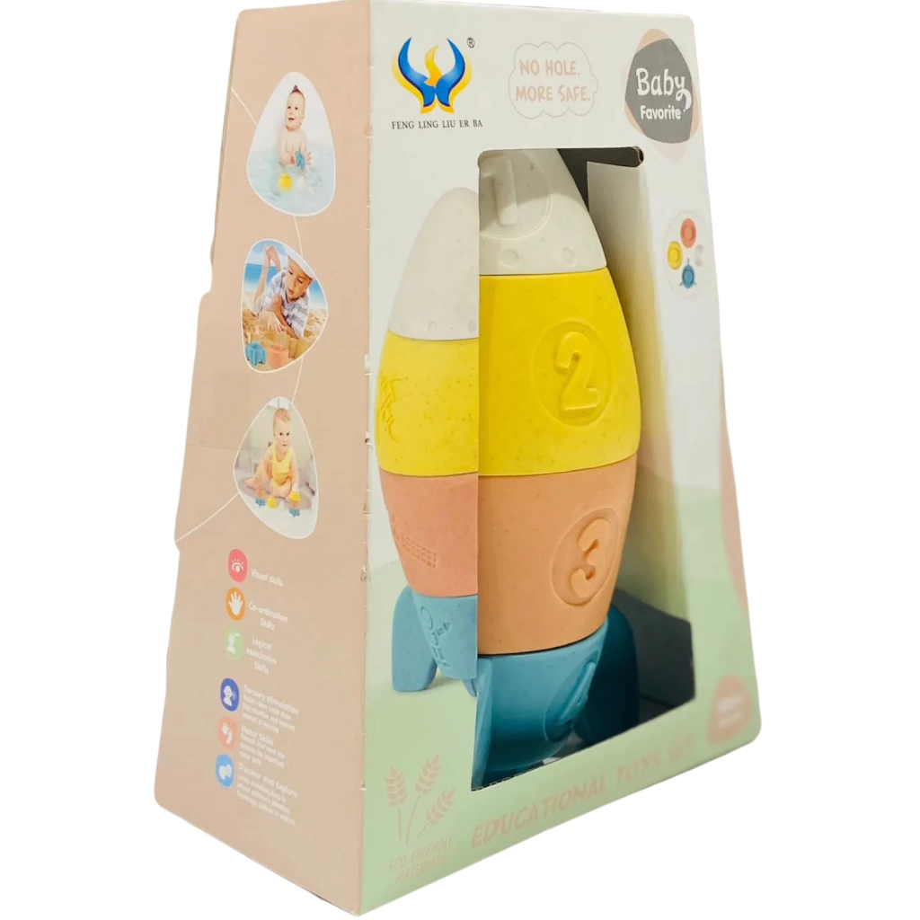 ¡Descubrí la diversión y el aprendizaje con el Baby Favorite Cohete de 4 piezas apilable!