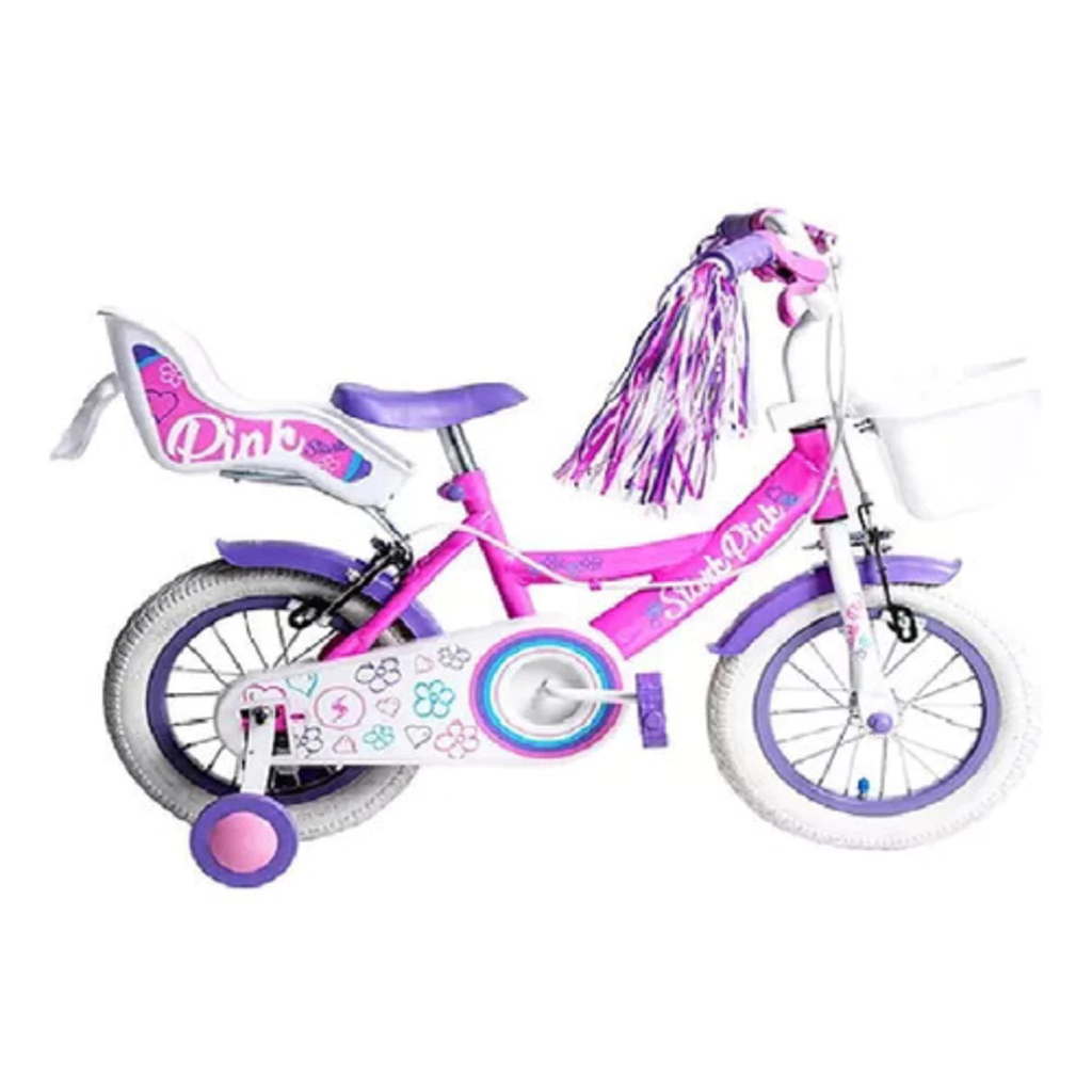 La Bicicleta Stark 6130 en color pink, rodado 12, es perfecta para las pequeñas ciclistas. Con cuadro de acero reforzado, rueditas estabilizadoras, y detalles como flecos decorativos y silla porta muñecas, combina seguridad y estilo. Incluye freno tipo herradura y llantas de aluminio, y se entrega lista para usar.