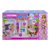 Las áreas de juego incluyen una cama, un baño, una cocina y un comedor, todas con un colorido diseño y el estilo emblemático de Barbie.