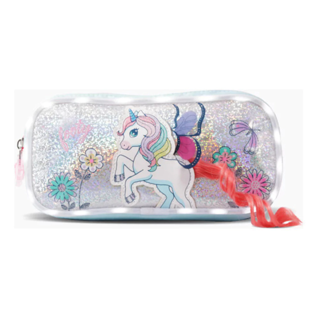 Frente holográfico con estampa de unicornio y apliques de alas y cola para jugar