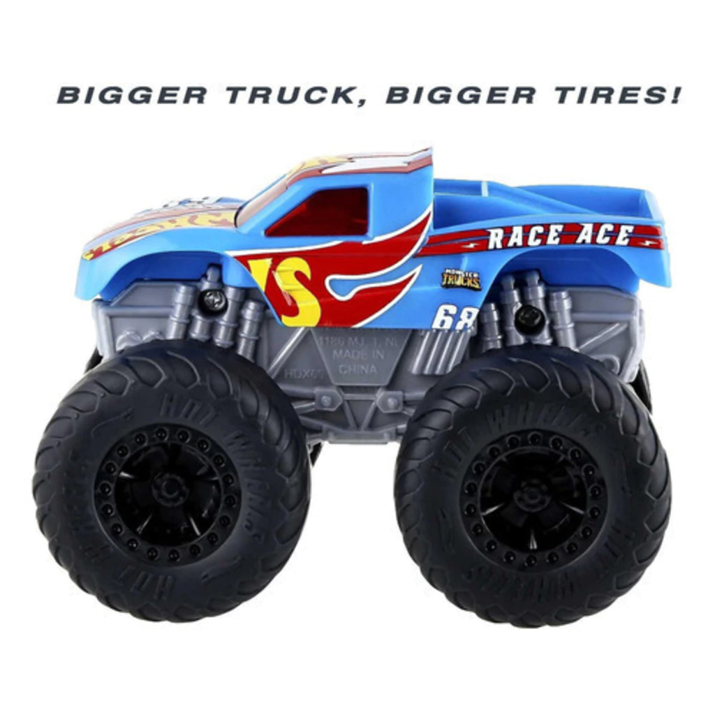 El camión Hot Wheels Monster Trucks Roarin' Wreckers ofrece toda la emocionante acción de choques y aplastamientos con la ventaja adicional de luces y sonidos para mejorar la experiencia. Este vehículo favorito de los fanáticos tiene escala 1:43 y presenta los impresionantes gráficos y ruedas gigantes de la marca Hot Wheels Monster Trucks. Presione un botón para escuchar el motor y los sonidos aplastantes, así como el tema musical de cada uno . Es como estar en un show en vivo. ¡También hay una luz dentro de la cabina que los niños pueden ver a través de las ventanas! Querrán coleccionarlos todos para organizar competencias con efectos de sonido en casa.