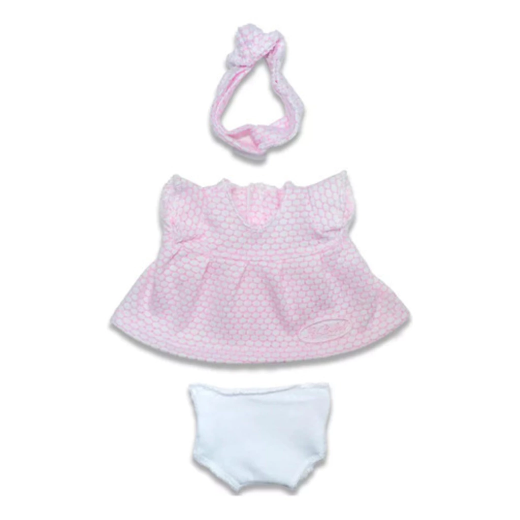 VESTIDO ROSA DE 10CM CON BOMBACHA Y VINCHA PARA EL CABELLO. ESTE ATUENDO ES IDEAL PARA LA MEDIDA DE MUÑECOS DE 20 CM.