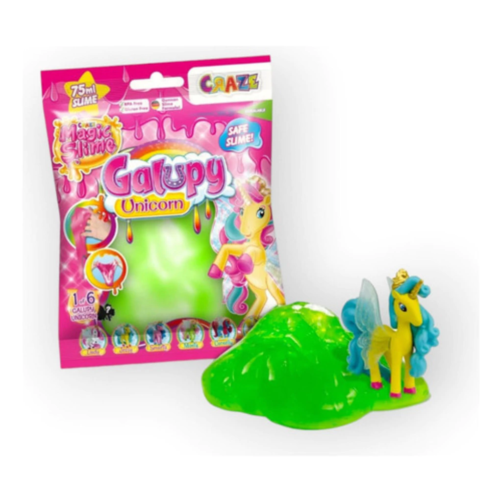 ¡El MAGIC SLIME de CRAZE te lleva al mundo mágico del UNICORNIO GALUPY con nuestras coloridas bolsas de papel aluminio con sorpresa de Slime Mágico! ¡La diversión viscosa del MAGIC SLIME de CRAZE ahora también está disponible en una bolsa de papel aluminio que contiene una pequeña figura sorpresa del UNICORNIO GALUPY en su interior!