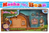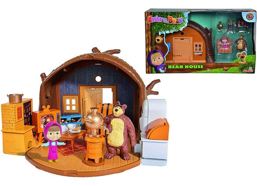 El set contiene una replica de la casa del oso original de 20cm con sorpresas, una figura de Masha y tambien del oso y accesorios.