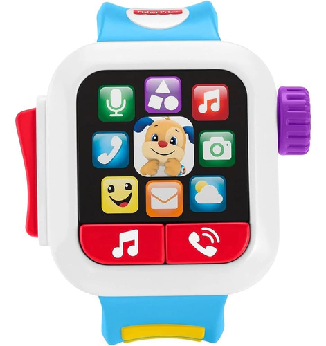 Tu bebé puede chatear con Perrito, contar números y conocer todo acerca de los diferentes colores y saludos con Ríe y Aprende® Mi Primer Smartwatch. Este reloj inteligente de juguete parece real, con una pantalla iluminada, banda fácil de agarrar y muchas actividades que tu bebé puede explorar.
