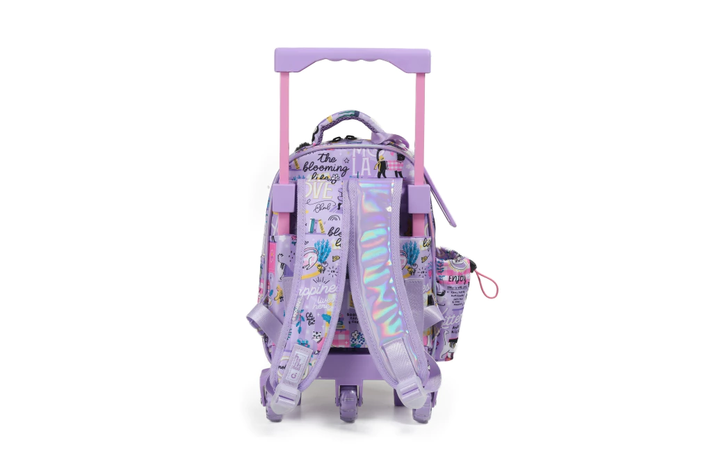 Con un diseño atractivo y moderno, la mochila cuenta con ruedas que facilitan su transporte, haciendo que el desplazamiento sea sencillo y cómodo. Su estructura ligera permite que las niñas la manejen con facilidad, mientras que su único bolsillo ofrece un espacio adecuado para guardar lo esencial.