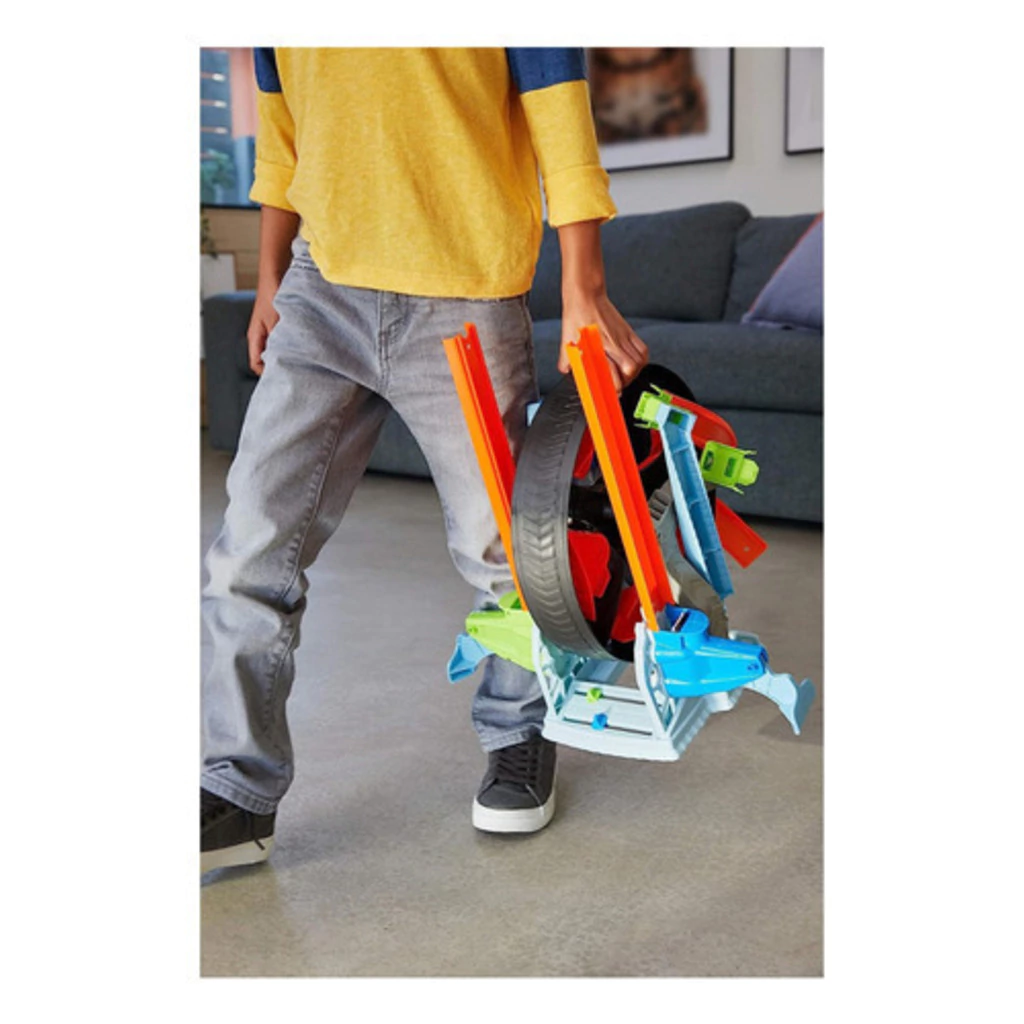 este emocionante juego Hot Wheels Spinwheel Challenge incluye todo lo que los niños necesitan para poner a prueba sus habilidades de conducción de alto rendimiento. ¡Con la rueda giratoria, dos lanzadores y dos autos incluidos, los niños pueden desafiarse a sí mismos y a los demás para lanzar sus autos por la pista, a través de la rueda giratoria y golpear las aletas de puntuación en la rueda para obtener puntos! El puntaje total más alto gana el día, pero el desafío en sí es donde está la diversión. ¡Ayuda a desarrollar las habilidades motoras, el tiempo y el impulso competitivo de los niños! Para edades de 5 a 10 años.