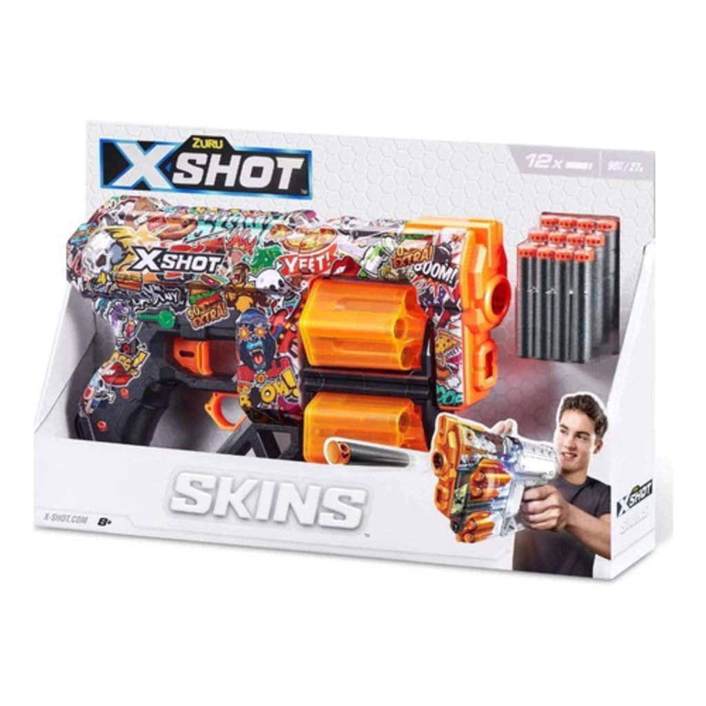 X-Shot Skins trae la experiencia en el juego de desollar tu blaster en el mundo real- elige tu Skin y únete a la batalla. Con una capacidad de 12 dardos- los barriles giratorios dobles de Dreads significan que está bloqueado y cargado para divertirse y puede volar la competencia desde una distancia de hasta 20 m.